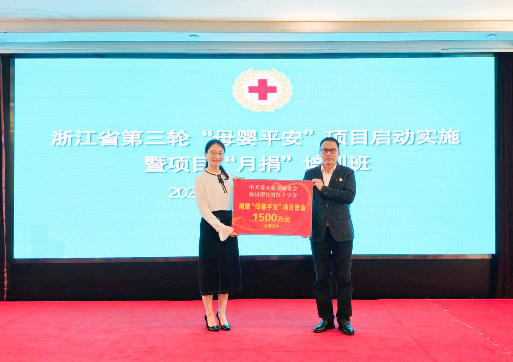 启动仪式上,中天控股集团有限公司通过中天爱心慈善基金会向浙江省红十字会捐赠1500万元(分期五年),专项用于为非浙籍外来务工困难家庭的高危孕产妇及新生儿提供医疗救助。