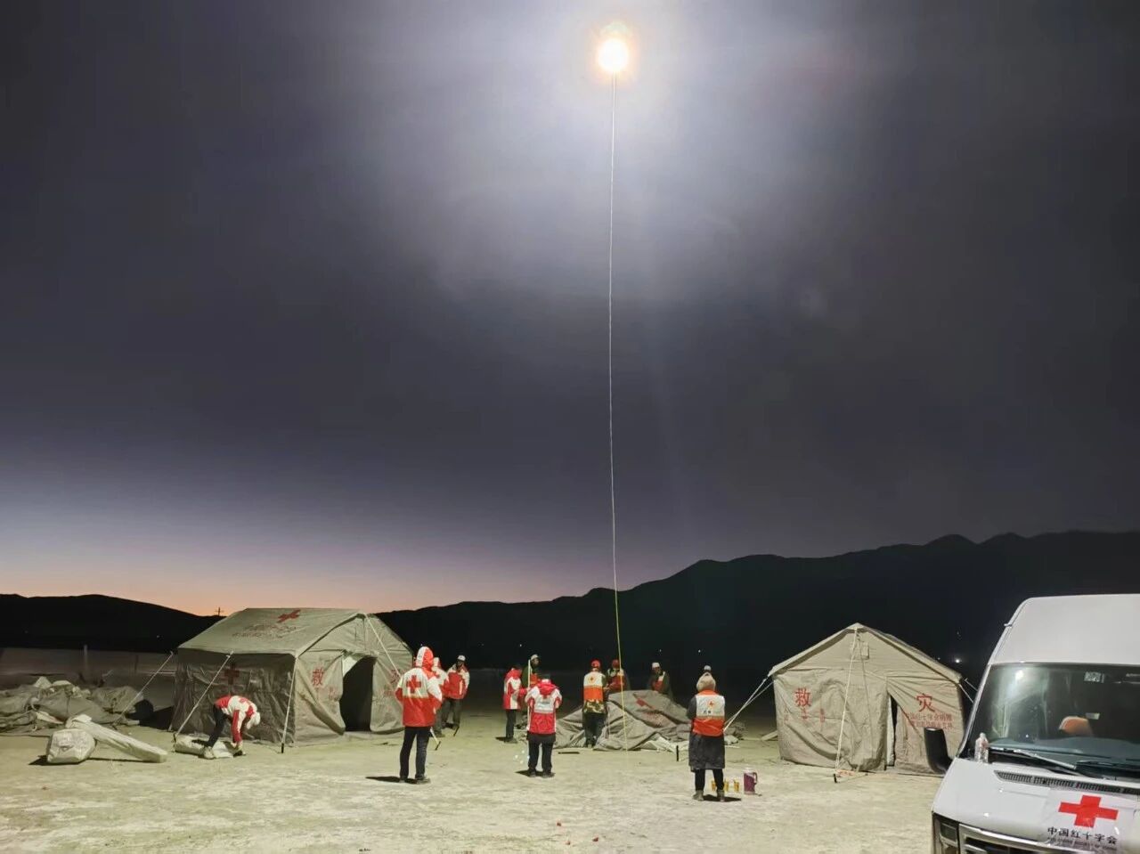 浙江红十字无人机救援队照明无人机点亮西藏地震灾区夜空