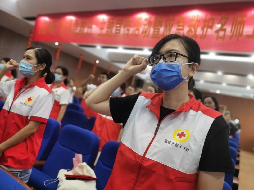 温岭市红十字会举行应急救护名师工作室授牌仪式,开展“师资结对帮带”活动,全市一、二级师资每个人结对帮带1-2个三级师资,以“师傅带徒弟”的模式实现师资“以老带新”、梯队成长,并向通过考试并完成帮带的62位三级师资颁发了聘书,新入录的三级师资还进行了入会宣誓。