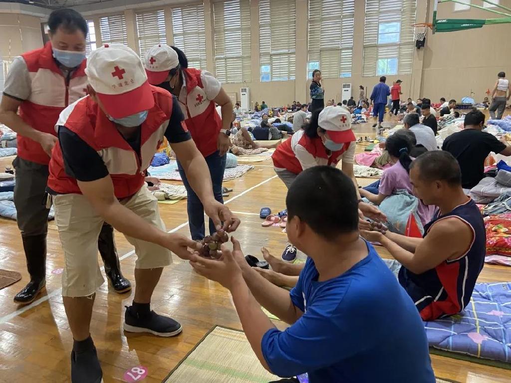 北仑新碶街道红星应急救援队到多个避灾点开展红十字急救知识普及、现场维护和医疗保障。