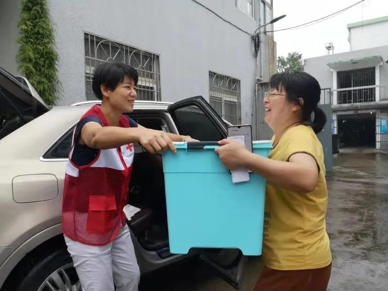 宁海县红十字会陆续将宁波市红十字会下拨的赈济救灾物资发放至基层红十字会,红十字志愿者们第一时间将物资送到了受灾群众手中。