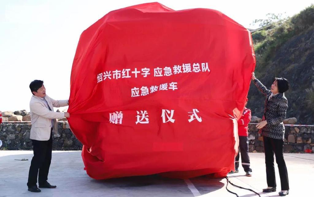 活动现场,绍兴市人民政府向绍兴市红十字应急救援队新昌分队赠送一辆应急救援抢险车。