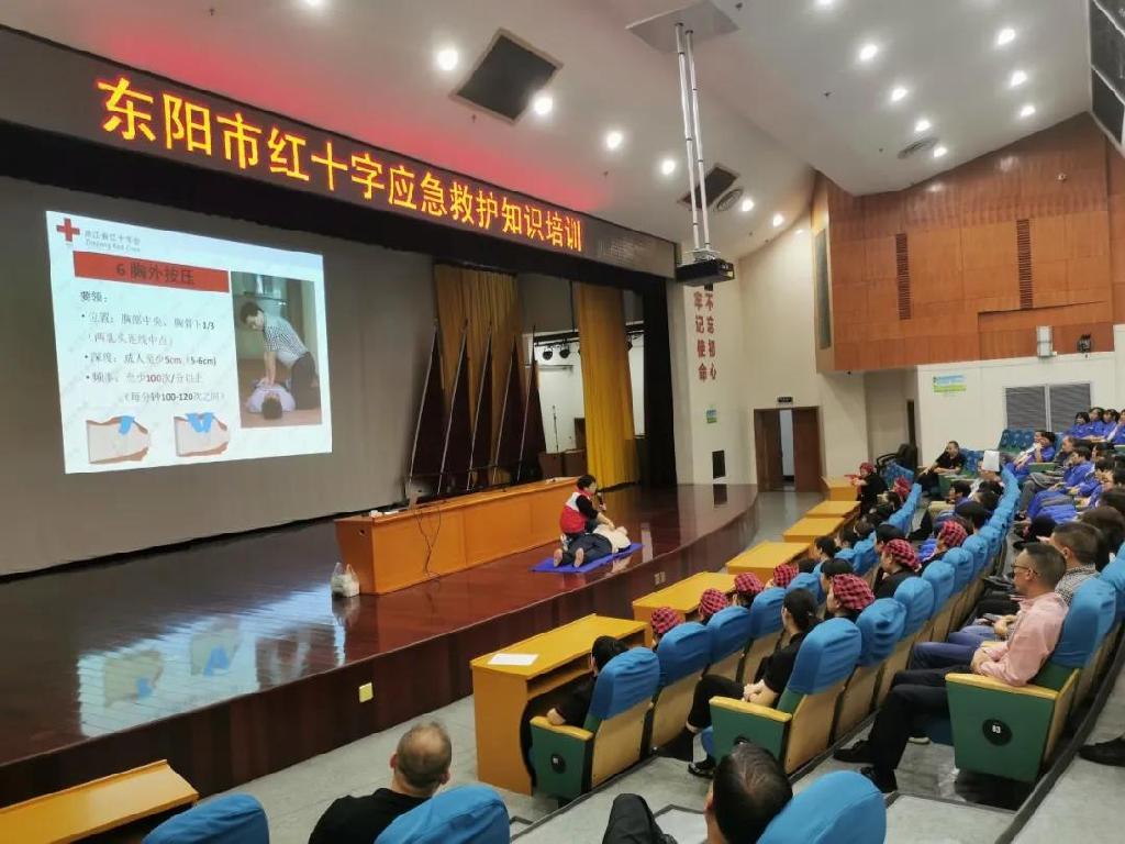 东阳市红十字会联合市机关事务保障服务中心,为近200名干部职工开展应急救护普及培训。红十字救护培训讲师结合身边发生的案例,重点讲解心肺复苏、AED使用、常见急症、创伤救护等知识,并悉心指导学员实践操作。