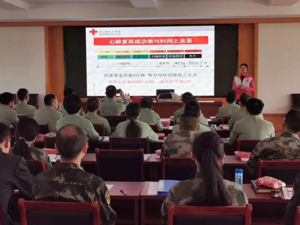 近期,缙云县红十字会为县人武部的民兵开展红十字救护培训。红十字救护培训讲师通过理论讲解、操作演示和现场互动等方式,为他们详细讲授心肺复苏、创伤救护、AED使用等知识和技能。最终有49名学员通过理论考试和实践操作考核,并取得红十字救护员证。