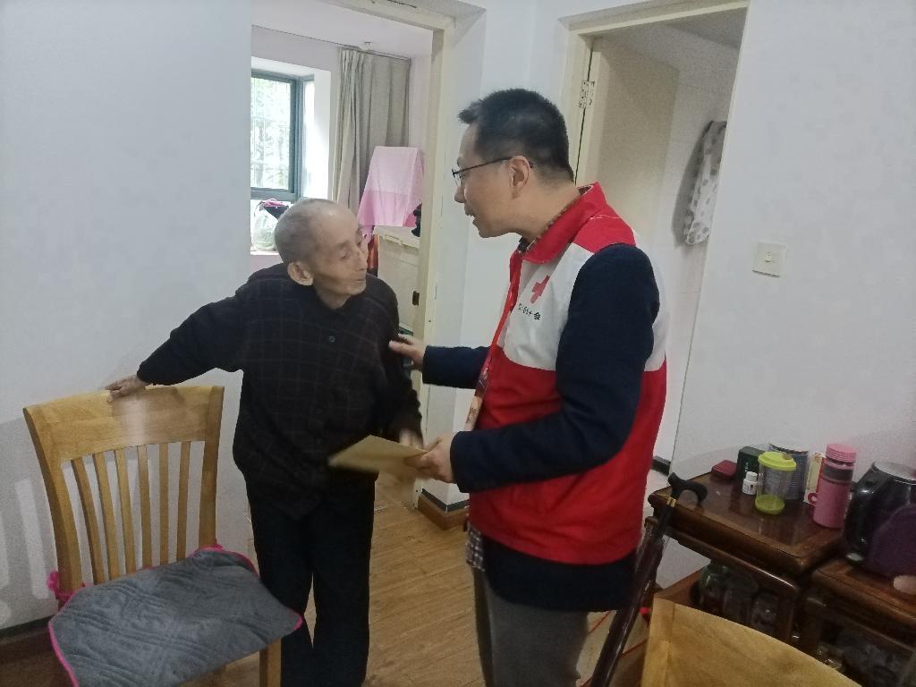在走访过程中,江北区红十字会的陆稚波书记还为老人们送上了米、油、拐杖式雨伞等慰问品,与老人或者老人的子女进行了亲切的交谈,进一步了解老人们的日常生活情况及身体状况,叮嘱老人们要多保重身体,颐养天年享受幸福生活。