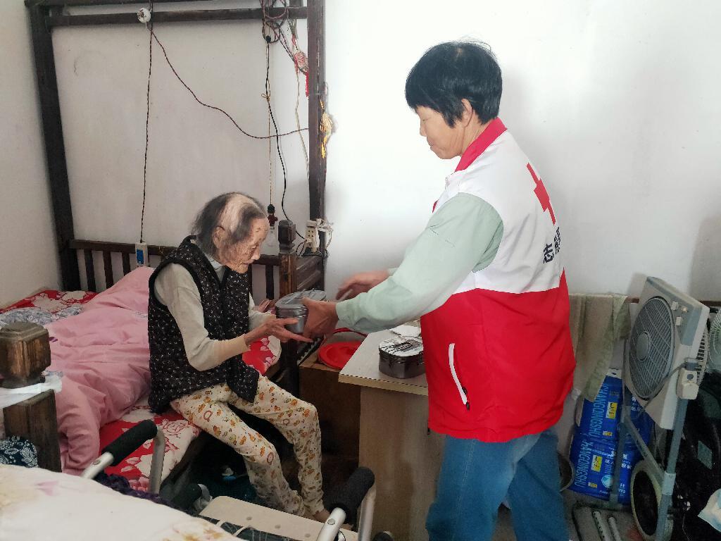 “小丽,你们家隔壁的98岁老人,经过我们村里商量后,会由红十字会志愿者为他提供免费送餐到家,不仅是他,我们村88周岁以上的老人都能收到我们乡贤反哺项目的免费午餐,解决家人的后顾之忧……”