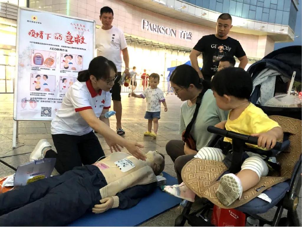 在普及急救知识的同时我也在不断成长。做普及性的教学时,主要让大家知道急救知识的重要性,以及学会如何在有限的时间里对伤员进行有效的处置。比如,不管何时我们一定要在确保自身安全的情况下去处理伤员、帮助别人;比如,伤员在大出血时我们应该第一时间想办法止血。普及最多的还是心肺复苏,对于低年级的学生主要是让他们了解这门急救方法,以及记住一些重要的步骤。而对高年级学生、成年人,还是需要让他们不断地进行模拟训练,只有多练才能在真的遇到意外伤害时不慌乱。