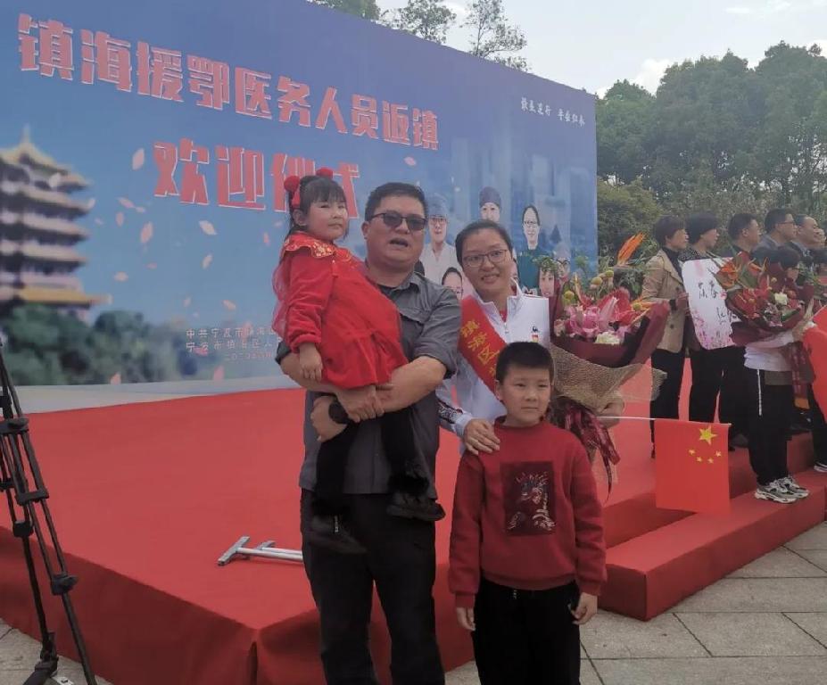 也许是受丈夫影响,也许是医务人员职责使然,今年2月9日,镇海区第二批11名医务工作者启程奔赴湖北支援,杨斌的妻子姚蕾就在其中。