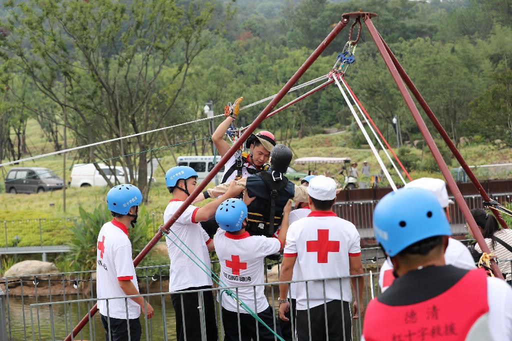 近日,德清县纪念第21个“世界急救日”应急救援演练在下渚湖田博园成功举行。演练活动由湖州市红十字会、德清县红十字会共同举办,市红十字赈济救援队、县红十字山鹰救援队承办。市红十字会领导徐旭萍、莫建新、朱治方,县领导陈健、姚夏林、洪延艳、王秀琴出席。