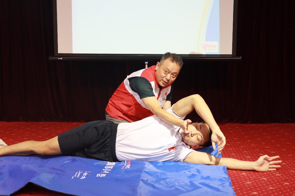 接下来的三天时间里,学员们将学习红十字运动基本知识,操练CPR(心肺复苏术)、AED(自动体外除颤仪)、止血包扎等急救技能,掌握如何处置烫伤、气道异物梗阻等常见急症,以及正确应对运动损伤、淹溺、踩踏等意外伤害。