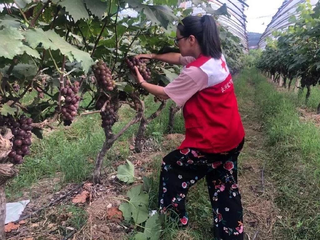 长兴县小浦镇合溪村红十字会员和志愿者主动前往扶贫葡萄基地,帮助果农采摘、修果、装箱、打包、送货,助农增产增收。