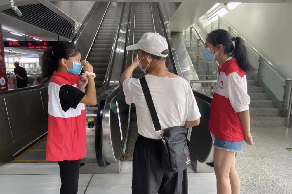 近日,宁波市北仑区红十字人道救助队的志愿者带领红十字青少年志愿者在地铁站开展志愿服务,为有需要的乘客讲解如何购票,选择正确的乘车路线,以及进出站安全防范等。