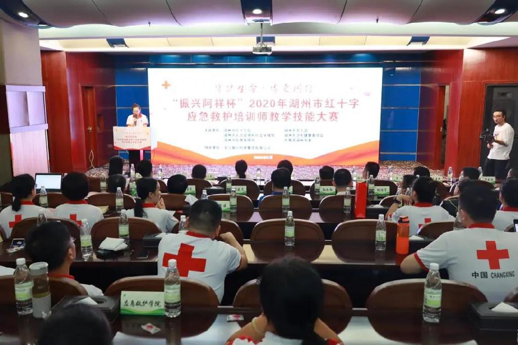 8月21日,湖州市红十字会联合市总工会、市人社局、市卫健委、市应急局、团市委5家单位,共同举办“振兴阿祥杯”2020年湖州市红十字应急救护培训师教学技能大赛。