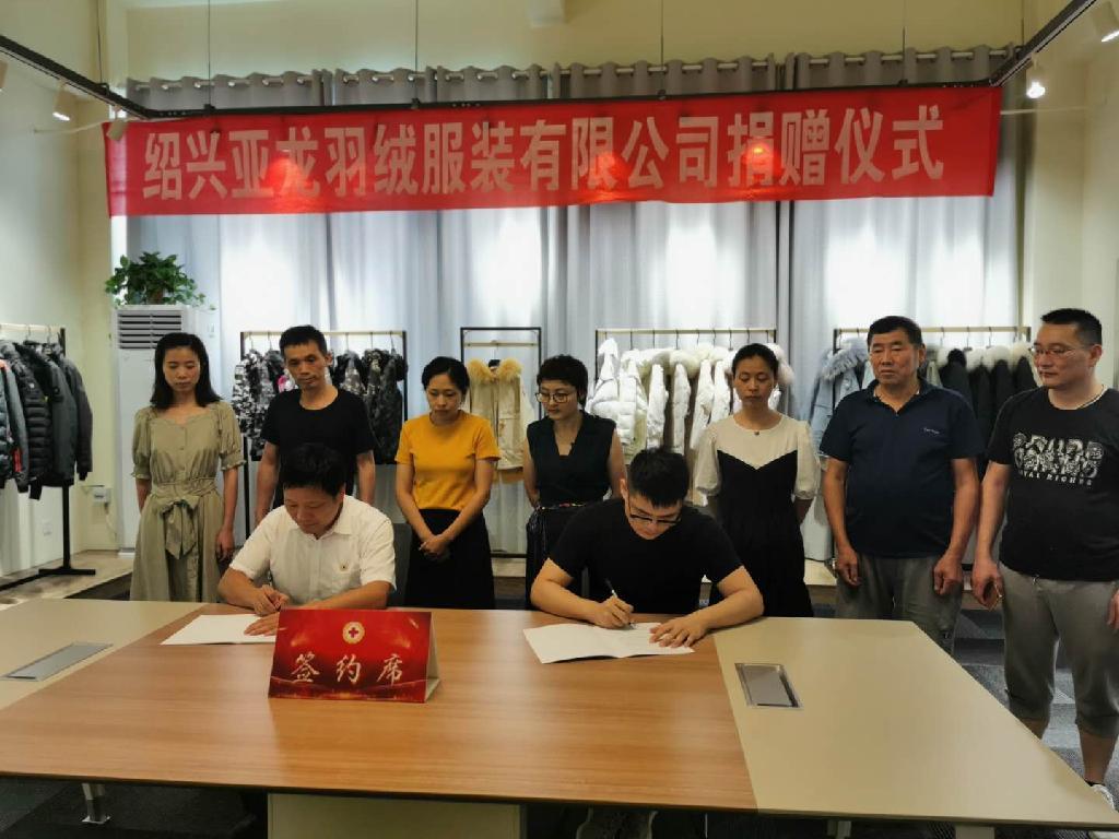 7月24日,绍兴亚龙羽绒服装有限公司与绍兴市红十字会签订捐赠协议,捐赠价值337.6295万的羽绒服、单衣等,定向用于四川省阿坝藏族羌族自治州马尔康市、金川县以及绍兴市人道帮扶。