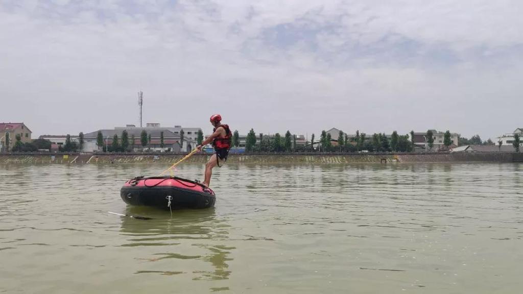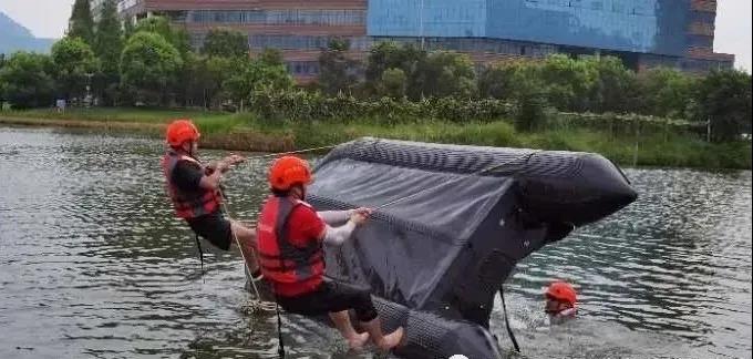 7月26日,瓯海区红十字救援队在温州商学院水域开展水上救援演练。救援队员现场演练水中翻船自救、冲锋舟驾驶、单板救援等科目。