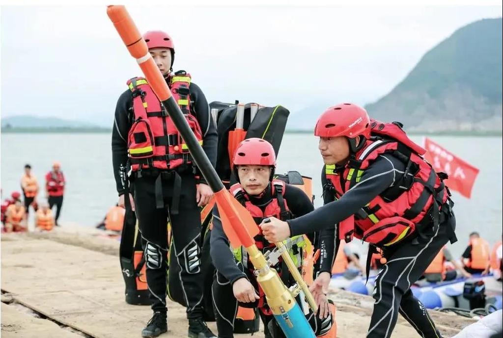 近日,三门县人民政府防汛防旱指挥部组织县应急管理局、县水利局、县红十字会等部门在滨海新城金麟湖开展2020年三门县防汛防台应急综合演练。演练模拟台风袭击该县,出现持续强降雨,县内发生城市内涝、地质灾害、危化品泄露、人员围困落水等险情,县防指组织开展分析会商、指挥决策、应急救援、险情处置等台风全过程防御。三门县红十字猎鹰救援队组织10余名队员参加防汛演练,现场展示抛投器救援、浆板救援、翻舟自救等科目。