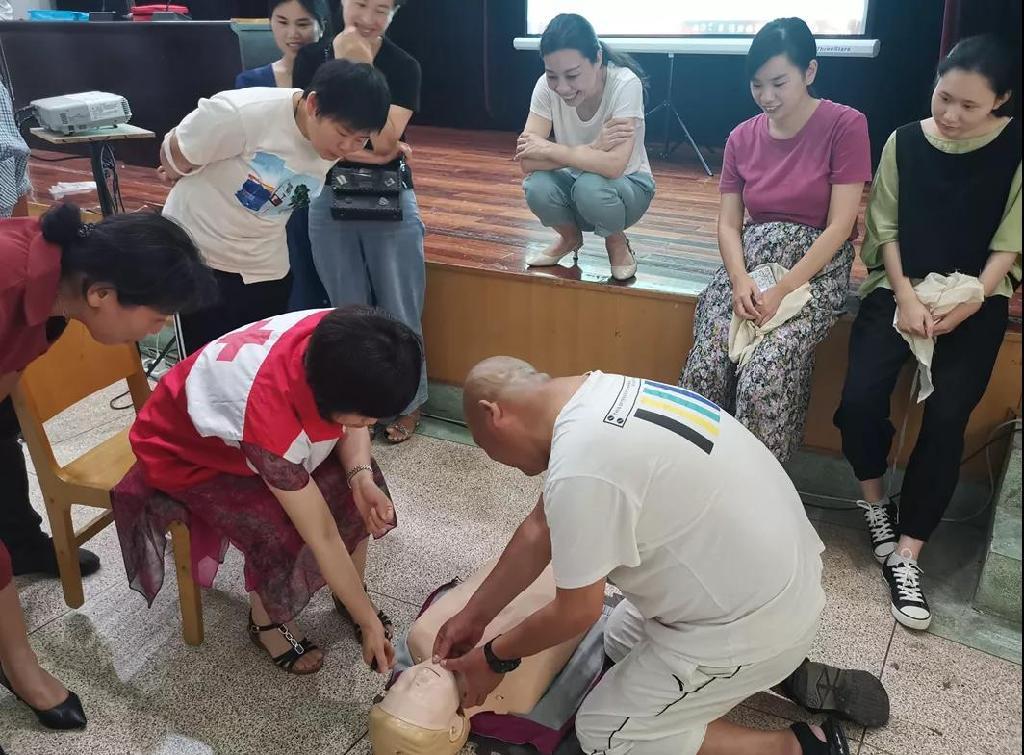 南浔区菱湖镇红十字会为全镇规上企业的近40名职工举办专场应急救护知识培训班。红十字救护培训讲师详细讲授红十字运动、创伤急救、心肺复苏和气道异物梗阻等相关知识和技能,并一对一指导学员规范实践操作。