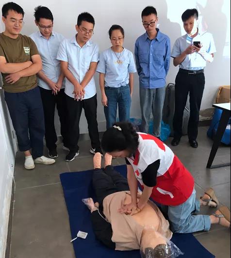 莲都区红十字会为浙江陕谷能源有限公司的员工开展应急救护培训,红十字救护培训讲师系统讲解心肺复苏、创伤救护和意外伤害处置等知识和技能,并指导学员规范实践操作。看到有学员操作不当时,救护培训讲师一边认真讲解操作要领,一边耐心地示范操作手法。