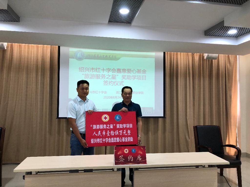 为表彰鼓励优秀学子、帮扶困境家庭学生,浙江嘉意旅游发展有限公司、绍兴市红十字会、浙江农业商贸职业技术学院三方经友好协商,决定设立绍兴市红十字会嘉意爱心基金“旅游服务之星”奖助学项目,本项目资金规模为每年人民币5万元,连续实施3年 ,其中每年有3万元用于奖学,2万元用于助学。