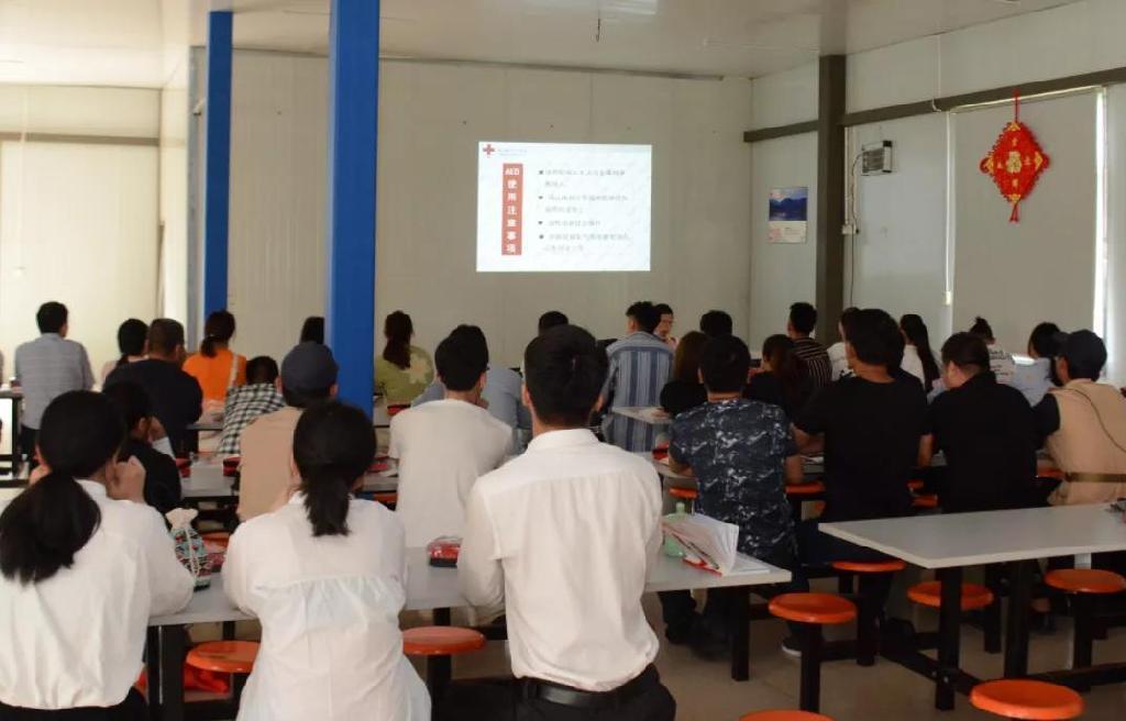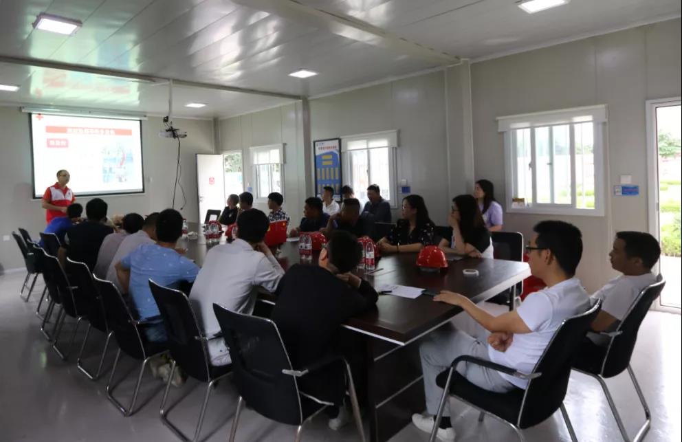 椒江区红十字会联合区总工会开展“应急救护进重点工程”宣讲活动,为葭沚水城桥东工程项目部的工作人员开展应急救护培训。红十字救护培训讲师围绕高空坠落伤、触电等展开心肺复苏、创伤救护等相关知识的讲解,现场演示心肺复苏、创伤救护、意外伤害处置等技能,并手把手规范指导学员进行现场实践操作。
