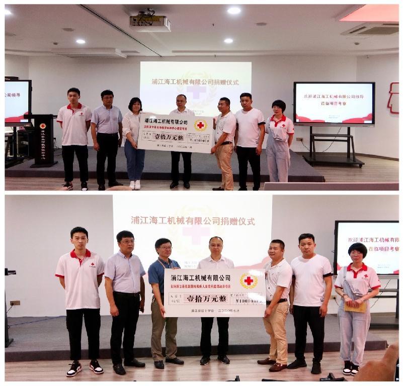 近日,爱心企业浦江海工机械有限公司向浦江县红十字会捐赠人民币20万元,定向用于县生命教育体验中心建设和困难残疾人家庭无障碍改造项目。7月3日下午,捐赠举牌仪式在浦江县生命教育体验中心举行,副县长、县红十字会会长陈子华参加捐赠仪式并与捐赠方代表捐赠举牌。