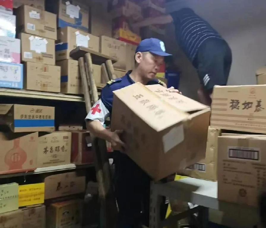 8日上午八点,再次接到求助,先后前往几何餐厅、星巴克、岛予商业街帮助企业和群众转移物资,结束后又赶往阳光大酒店、开元颐居酒店参与救灾抢险工作。一天转战几场,队员们的衣服湿了又干,干了又湿,他们喊着“众志成城,水位不退,我不退。我们时刻准备着,哪里有需要就奔赴哪里!”的口号,坚守在抗洪前线。