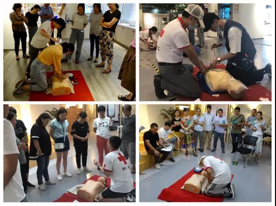 江干区红十字会为采荷街道芙蓉社区、人民社区和双菱社区的20余名社工开展应急救护培训。红十字救护培训讲师详细讲解现场急救、自救、互救的基础知识和注意事项,并传授心肺复苏、AED使用等急救技能,精心指导学员进行实践操作演练。