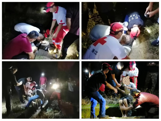 经过两个多小时的紧张搜救,次日凌晨1时20分左右,搜救队员在一条30cm宽的水沟里找到了被困老人。