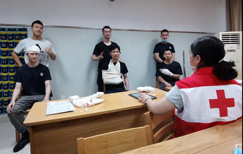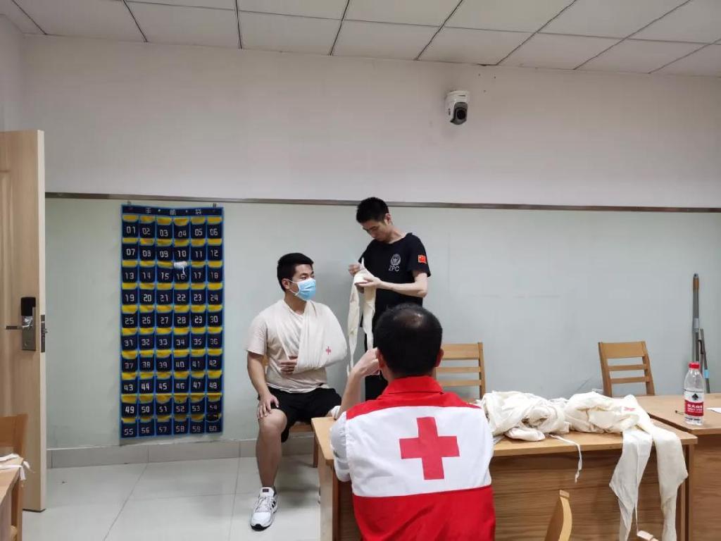 之后,在实践操作环节,学院红十字会发挥专业优势,由具备救护师资格的警院急救社骨干先对学员进行日常带教,再由省红十字救护培训中心的老师分组现场示教。
