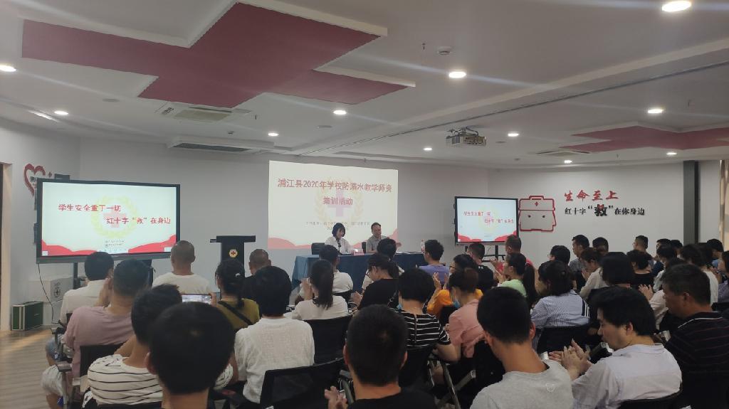 近日, 浦江县2020年学校防溺水教学师资集训工作会议在浦江县生命教育体验中心召开,来自我县63个学校(幼儿园)的94名安全教育老师(其中54名具有省红十字会应急救护二级师资资格,是县红十字会的兼职师资)参加本次教学集训。
