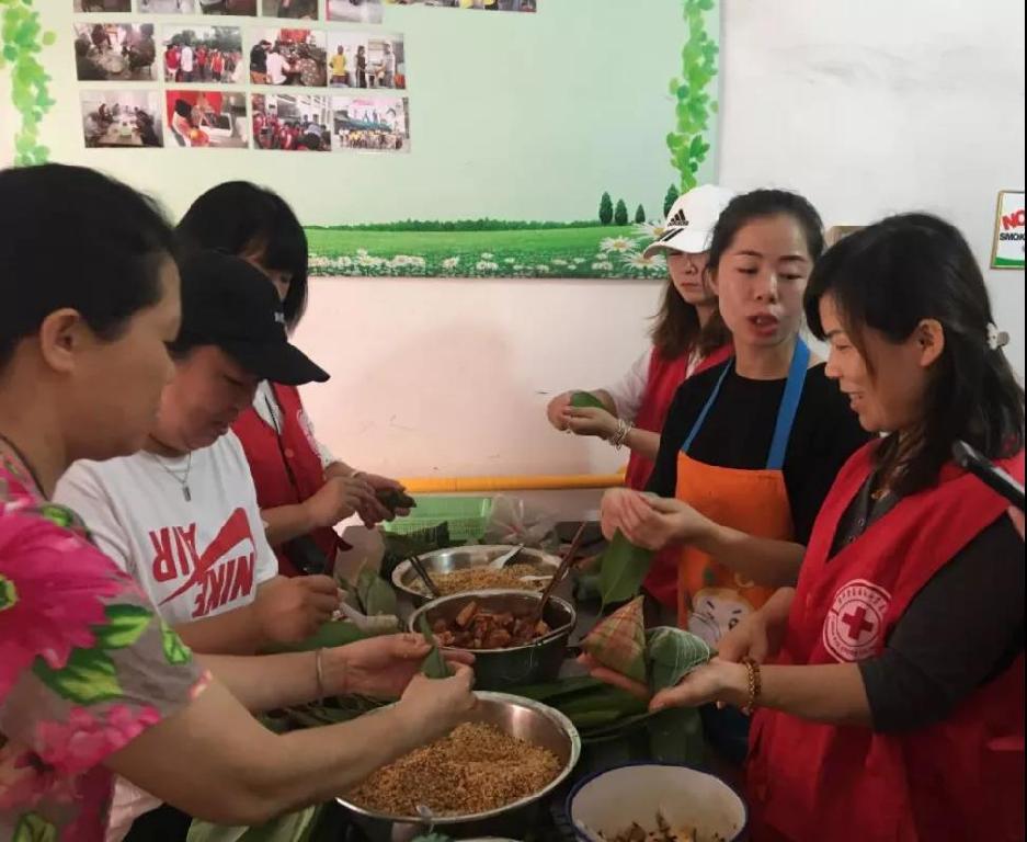 德清县舞阳街道红十字会组织会员、志愿者开展端午节困难家庭慰问活动,为辖区困难家庭送去粽子和香包等慰问品。