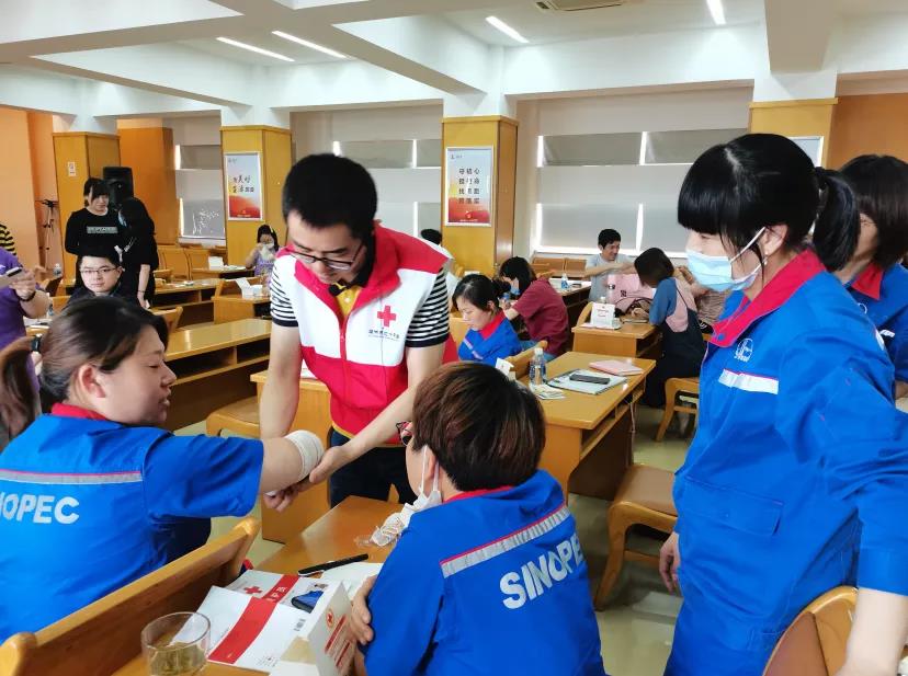5月21日-22日,吴兴区红十字会联合爱山街道红十字会,为40名中石化湖州分公司的员工开展红十字救护员培训,助力企业复工复产。红十字救护培训讲师结合身边发生的案例,用深入浅出、通俗易懂的语言讲授红十字运动、救护概论、常见急症、意外伤害、创伤救护、心肺复苏和AED使用等知识,而后又组织学员进行现场实践操作。