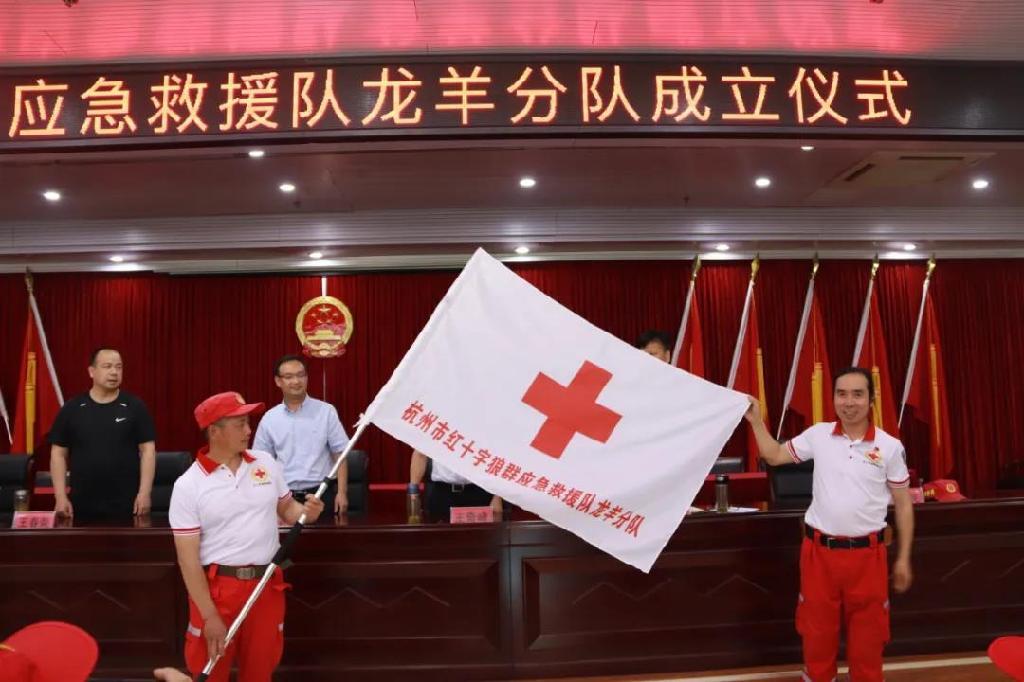 近日,杭州市富阳区红十字狼群应急救援队龙羊分队在万市镇成立,在成立仪式上,救援队员们还宣誓加入红十字会,成为红十字会员。