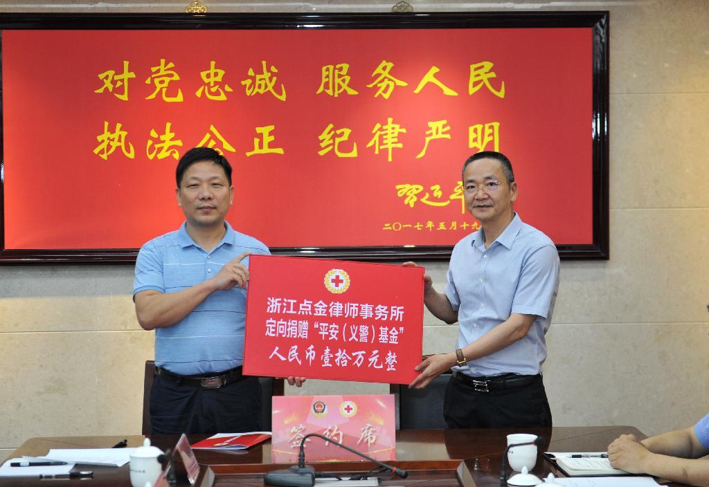 仪式上,绍兴市公安局与绍兴市红十字会签订“平安(义警)基金”设立协议,浙江京新药业股份有限公司和浙江点金律师事务所两家爱心单位分别向绍兴市红十字会捐赠资金20万元和10万元,定向用于“平安(义警)基金”,支持“平安绍兴”建设,充分展示出企业积极履行社会责任、投身公益实践的担当。