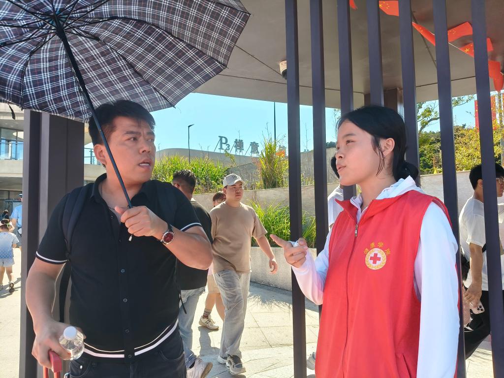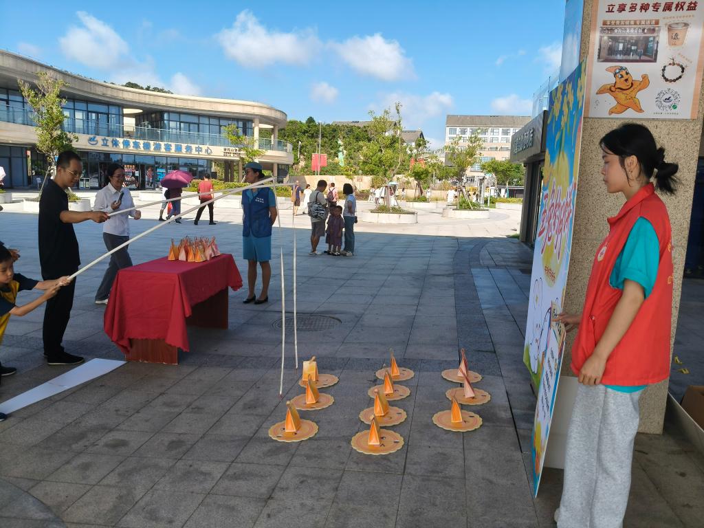 在停车场区域,志愿者们同样发挥着不可或缺的作用。他们不惧日晒,积极引导车辆有序停放,并清晰指引游客前往码头登船点或接驳车乘坐点,协助维持上下车秩序,确保人流与车流的安全高效运转。特别值得一提的是,中秋佳节当天,志愿者们精心组织了“钓月饼”趣味活动,让南来北往的游客在旅途中感受到浓厚的节日氛围和来自舟山的温暖,现场欢声笑语不断。此外,志愿者们还热情提供轮椅与婴儿车租借、临时物品寄存等便民服务,切实解决了众多游客——特别是老人、儿童及携带大件行李家庭的燃眉之急。