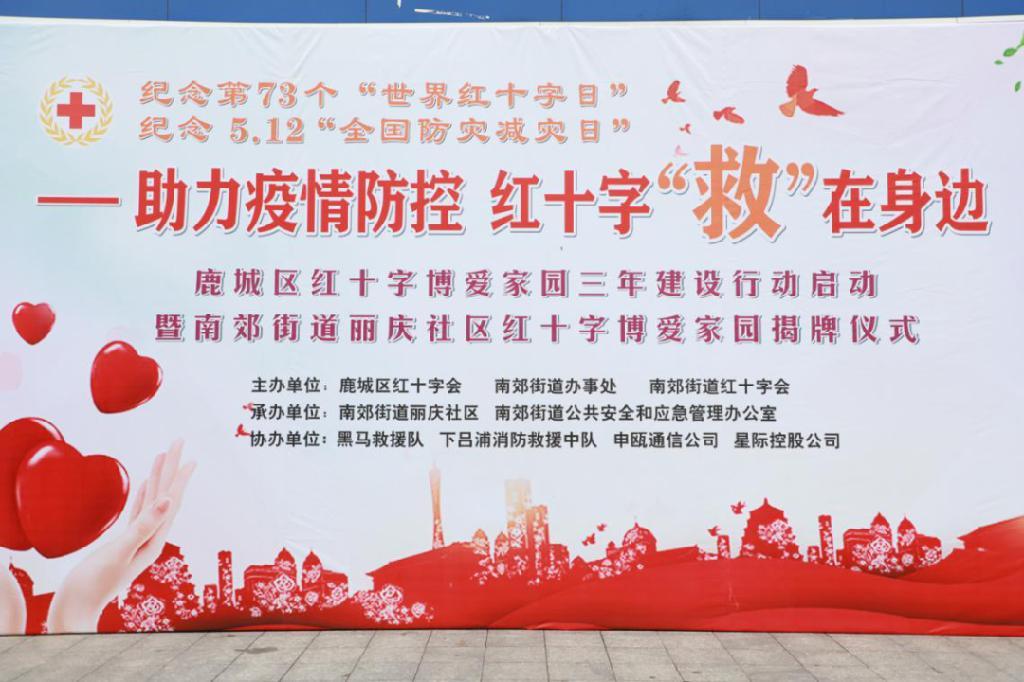 鹿城区红十字会联合南郊街道办事处和街道红十字会举办鹿城区红十字博爱家园三年建设行动启动暨南郊街道丽庆社区红十字博爱家园揭牌仪式。