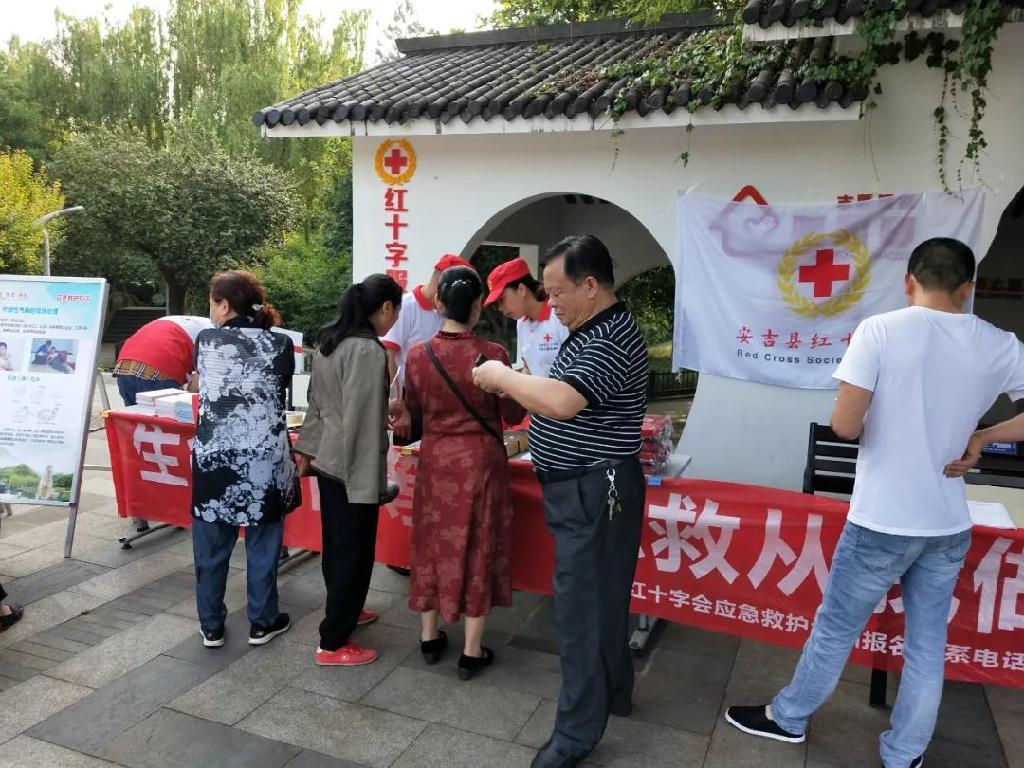 安吉县红十字会联合安吉电台FM100.1直播间,与广大市民相约在“云端”,向他们传播红十字运动基本知识,普及“三献”知识,并为县内20余家重点外贸企业送去急救包、急救手册等,助力企业复工复产。县红十字会还在昌硕公园红十字会服务站开展应急救护知识普及活动,向市民群众发放宣传手册。