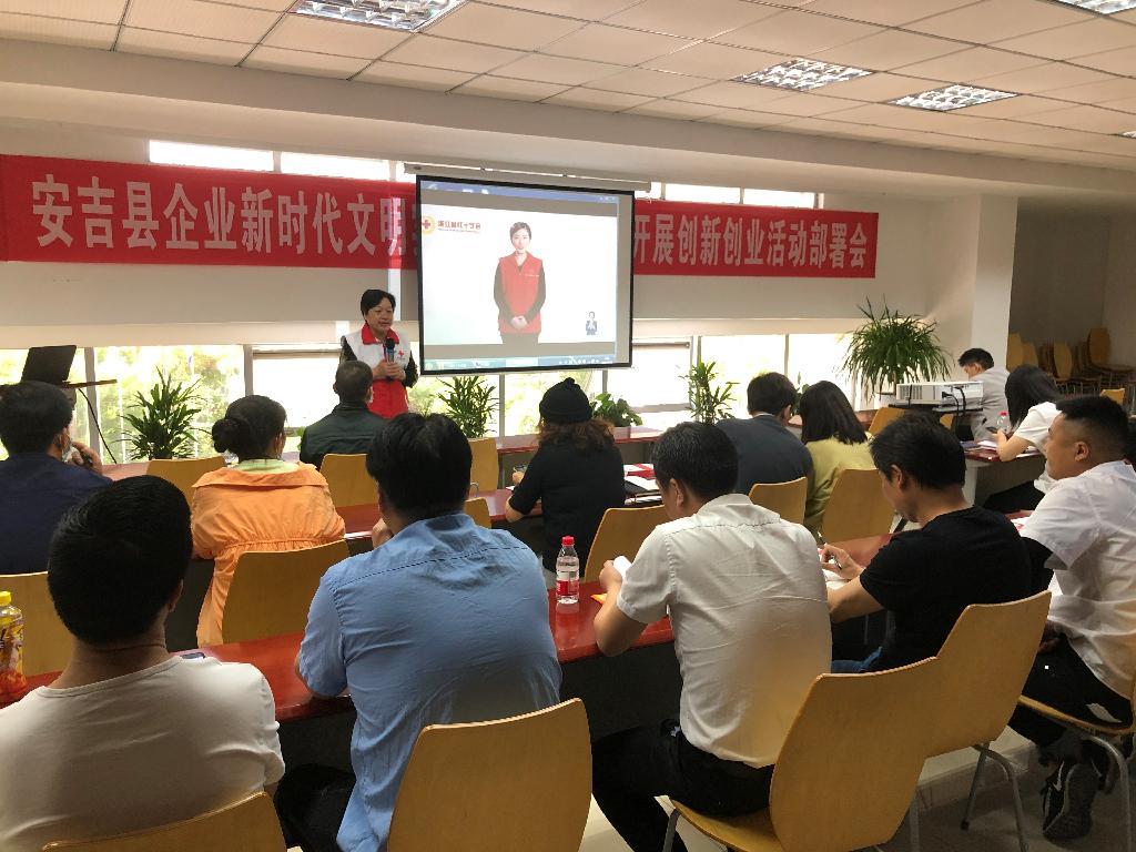县红十字会秘书长张美琴带领4名急救师资,走进浙江恒林椅业股份有限公司,为40余名企业班组长送去红十字救护员培训的课程。
