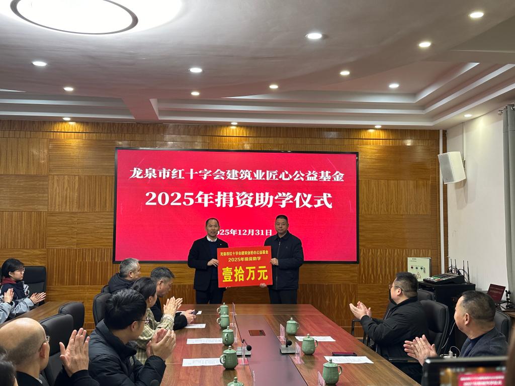 12月31日,龙泉市红十字会联合市教育局、住建局、工商联及建筑业协会,在龙泉中学举办建筑业匠心公益基金2025年捐资助学仪式,精准帮扶龙泉中学、浙大中学50名困难学子,每人发放助学金2000元,共计10万元。此次助学善举彰显了建筑业协会的责任担当与大爱情怀,市红十字会也将持续搭建公益平台,凝聚更多社会力量,助力青少年成长成才。