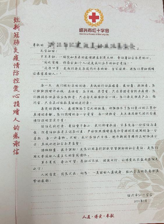 近期,绍兴市红十字会会领导一行在党组书记、常务副会长华珺带领下,对我市疫情防控期间部分爱心款物捐赠单位上门走访并致以谢意。