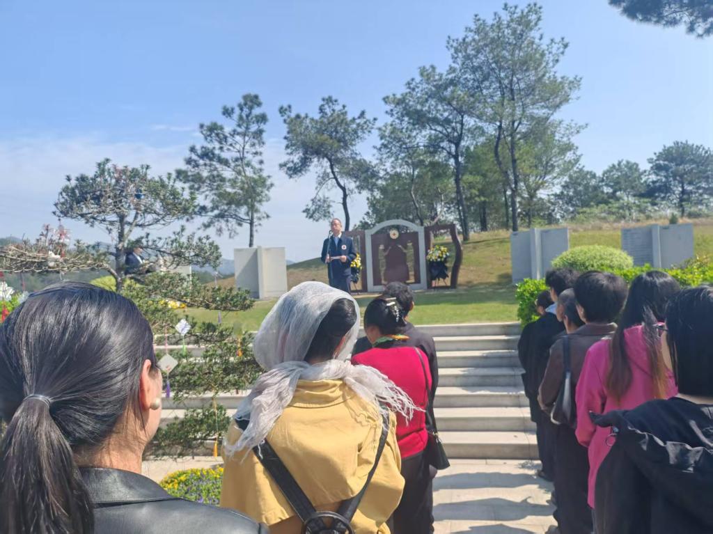 活动现场庄严肃穆,哀乐低回。全体人员向纪念碑鞠躬并静默一分钟,深深寄托哀思。卢建华老师恭读祭文,先锋救援队敬献花篮。白菊轻放、祈福卡寄情,不少家属含泪凝望碑文,轻声呼唤亲人,现场满是思念与敬意。