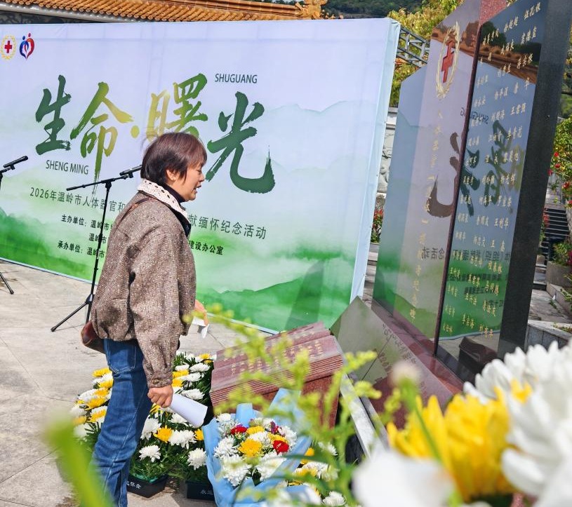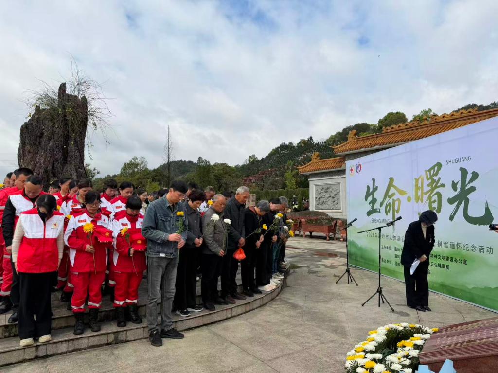 4月1日上午,以“生命・曙光”为主题的2026年温岭市人体器官和遗体(组织)捐献者缅怀纪念活动在市中心陵园广场举行。社会各界代表齐聚一堂,向平凡而伟大的捐献者致以崇高敬意与深切缅怀。