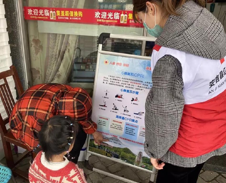 安吉县溪龙乡红十字会在特色便民服务中心设立流动咨询红十字宣传站,将红十字“一站式服务”功能有机融入特色便民服务中心,宣传站设立了急救知识讲解、免费测量血压等项目,还不定期组织现场一对一教学心肺复苏等应急救护知识和技能,取得了良好的宣传效果。
