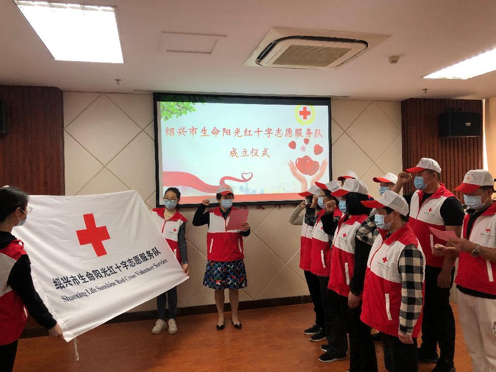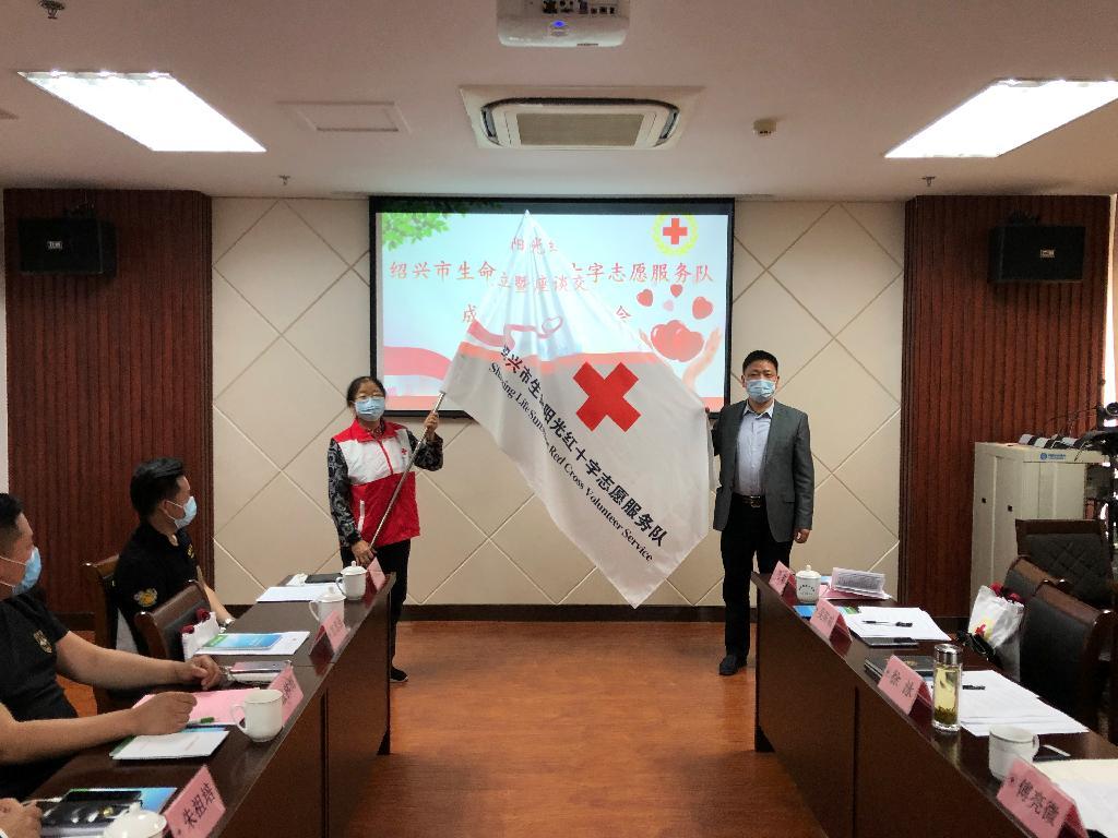 4月16日下午,绍兴市生命阳光红十字志愿服务队成立暨座谈交流会召开,首批15位来自各行各业的造血干细胞捐献者、器官(遗体)捐献者家属、器官(遗体)捐献登记者以及面向社会招募的志愿者们参加活动,市红十字会党组成员、专职副会长徐泳为服务队授旗,并授予衣帽等服务装备。