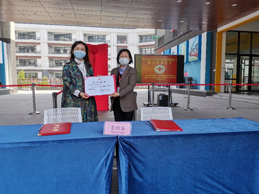 一是常规物资有效保障。在区委、区政府的统一领导下,在区疫情防控指挥部的统筹安排下,建立校园安全防控“储备物资池”,向“物资池”转赠口罩2万只、次氯酸钠消毒剂3吨、酒精2000瓶,重点用于突发公共安全事件的应急处置,筑牢校园疫情防控安全网,确保师生生命健康安全。二是重点设备精准支持。联合北京大成律师事务所、辽宁省浙江商会、浙江炬荣集团、杭州哈智机器人有限公司,向辖区丁荷小学、丁蕙小学、省科附校、四季青中学、钱外、天成学校、培知学校、御道学校、贝赛思国际学校、丁兰实验中学等十所学校转赠测温门、价值35万,此设备成在学生返校期间发挥了积极作用。三是党员先锋一线服务。区红十字会机关党支部联合区红十字会应急救援队党小组、学校所在社区党员志愿者开展“行走中的党课”志愿服务,为学校开展环境消杀面积超过10000平方。发挥红十字急救讲师团党员示范作用,探索线上应急救护培训跨时空、多资源、可重复等特点,积极推广“红十字急救云课堂”教学,扎实推进“红十字进校园”系列活动。