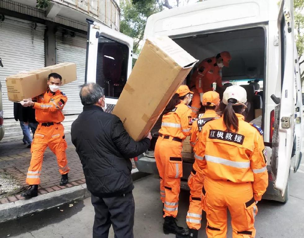 物资进不来怎么办?“我们上!”红枫应急救援队在椒江区红十字会的指导下,主动承担了椒江区域外捐赠的医用物资的接运工作,瞿文兵将自己公司的车拿出来用,外加队里一辆专用车,两辆车五六个队员随时待命。只要一接到区防控指挥部的指令,红枫应急救援队使命必达,远赴宁波、杭州机场等地,直接将急用物资运到椒江,转交给区防控指挥部,减少中间环节,为椒江防疫急用物资到位节省了时间。