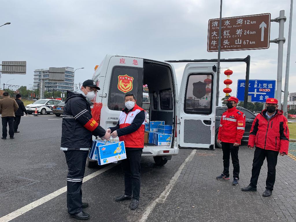 2月10日,武义县红十字会工作人员、红十字志愿队、红十字救援队带着各界人士的关爱,专程到白洋、壶山、熟溪三个街道及开发区,熟溪卫生服务中心、壶山卫生服务中心、白洋卫生服务中心及高速公路金华入口、金武公路范村卡点慰问看望在一线奋战的工作人员。