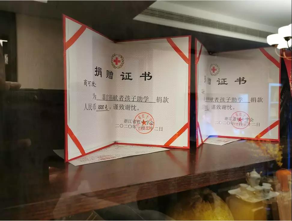 女主人商小燕说:“把捐赠证书放在家里最显眼的地方,就是最好的仪式!我们计划以后每年都把孩子过生日、节假日压岁钱等省出来,以小孩的名义帮助困难家庭器官捐献者的孩子。”