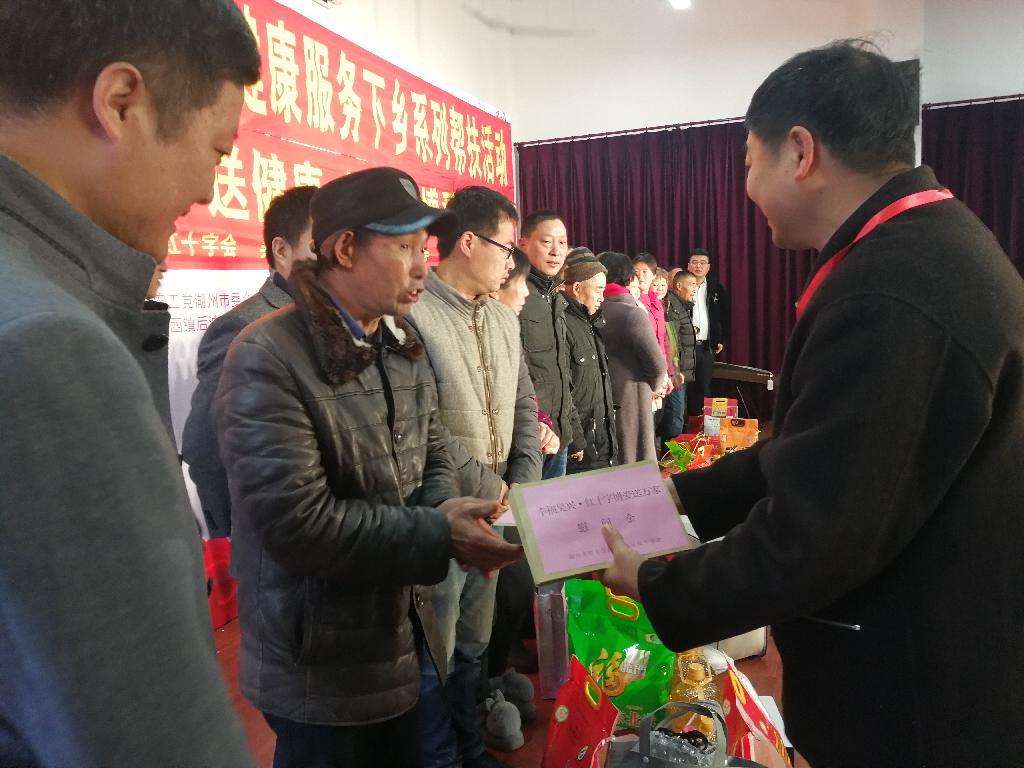 1月14日上午,吴兴区红十字会联合市红十字会、农工党市委会、农工党吴兴区基层委在妙西镇后沈埠村开展“送温暖、送服务、送健康,红十字博爱送万家” 活动,为10名因病致困的群众送上了祝福和慰问金,启动了2020年“红十字博爱送万家”活动。活动现场还邀请了市级医院专家团队义诊,切切实实为群众送上服务和健康。与此同时,妙西镇红十字志愿者表演了自编自演的文艺节目,受到了群众的热烈欢迎。此次吴兴区红十字会“红十字博爱送万家”慰问对象包括2019年造血干细胞捐献者、器官(遗体)捐献者家属、红十字优秀会员和志愿者困难家庭和吴兴区范围内的其他困难家庭。“红十字博爱送万家”是红十字会在人道救助领域开展的春节送温暖传统品牌项目。该活动不仅给困难群众带去了物质慰问,更多的是精神上的安慰,让他们感受政府和社会各界对他们的关怀,让他们实实在在体会到“人道、博爱、奉献”的红十字精神。