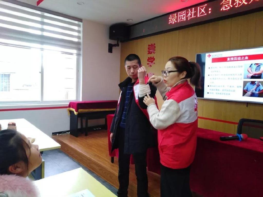 1月17日上午,区红十字会携手蒲鞋市街道红十字会,在绿园社区生命体验角为辖区青少年讲授应急救护知识,对假期意外伤害说“不”。
